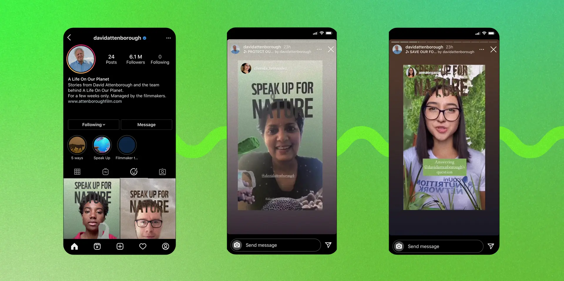 The World Wide Fund for Nature (WWF) approached Meta when launching a new documentary with Sir David Attenborough. A Life on our Planet is a powerful account of humanity’s impact on nature and a message of hope for future generations. We wanted to ensure the message connected with as many people as possible, focusing especially on the Gen Z community.